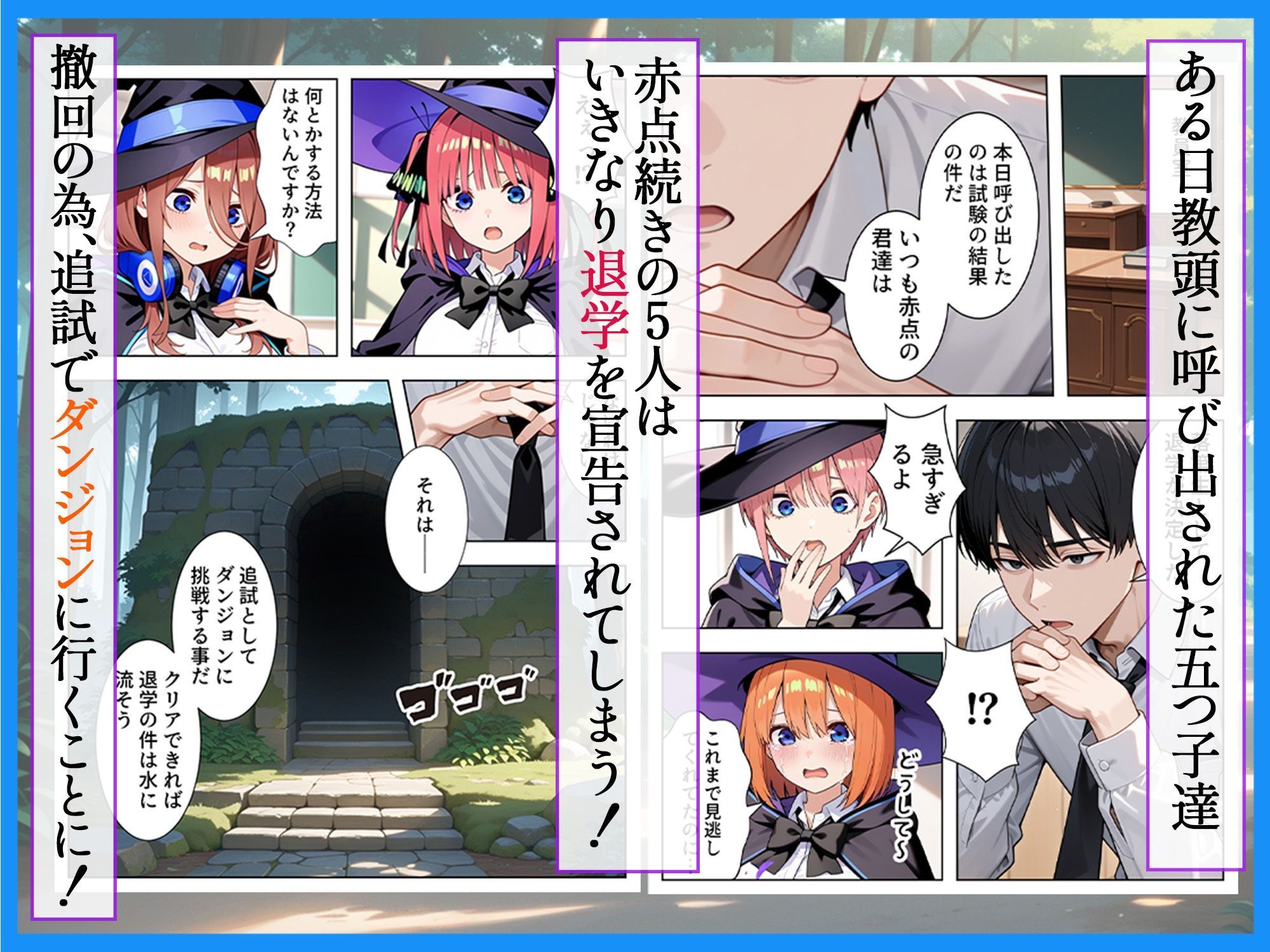 | タイトル | 五等分のダンジョン 落第生の五つ子 追試で向かった迷宮でエロ教師の罠にハメられ発情SEX |