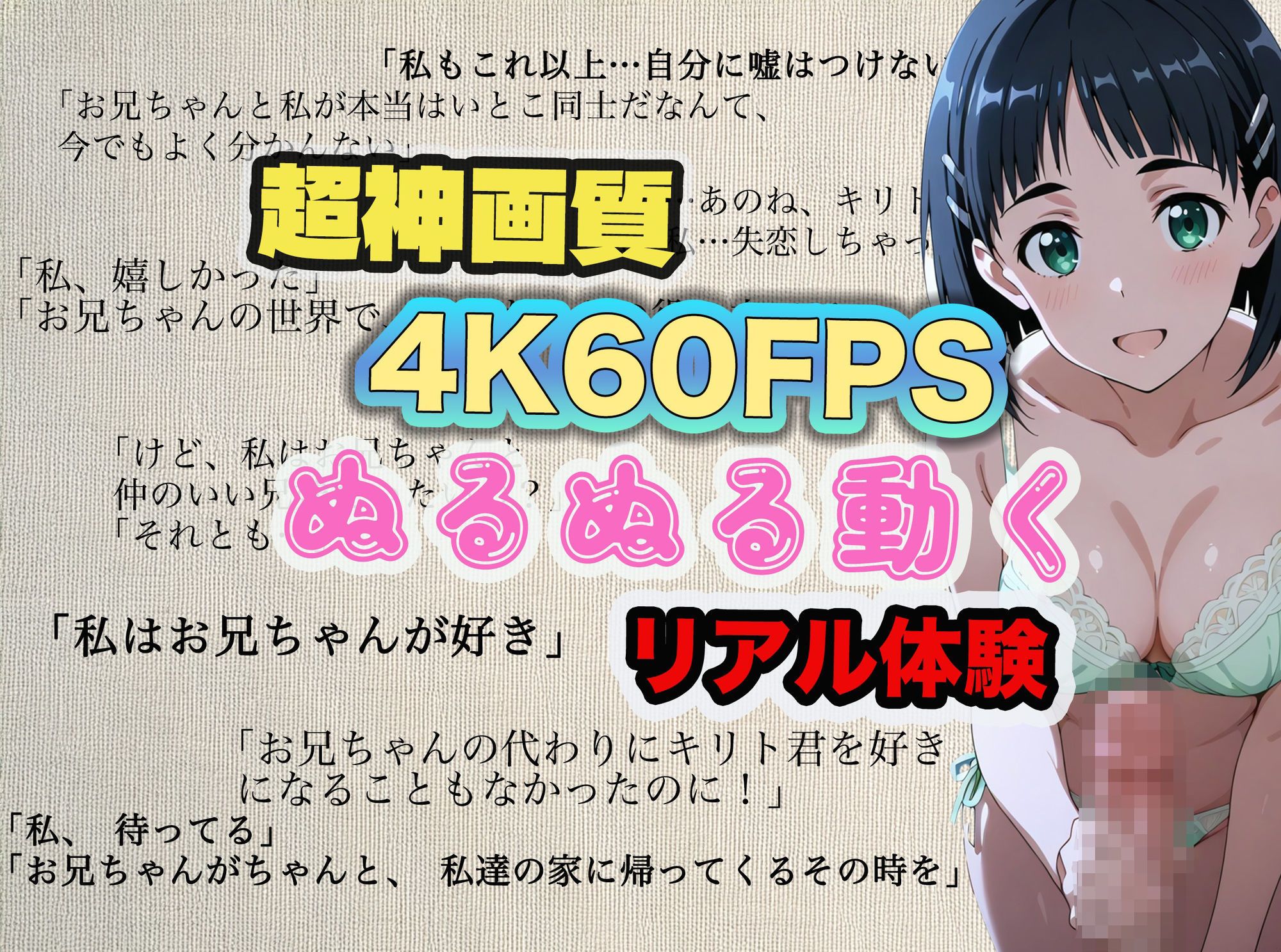 | タイトル | 【4Kアニメ】ソードアート・オンライン桐ヶ谷直葉:お兄ちゃんは直葉のものでしょ?実録!?妹と秘密の同居性活 |